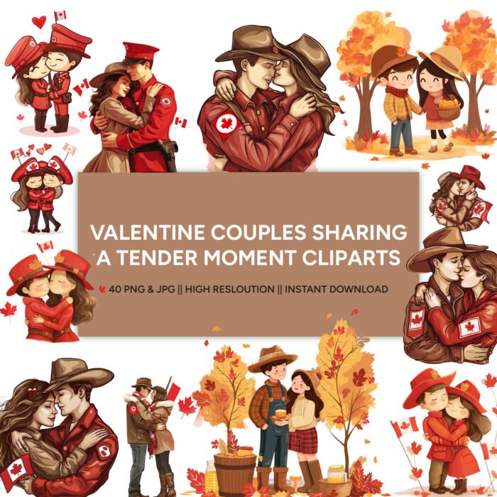 Couples Sharing a Tender Moment Valentine Cliparts | Perfect for Digital Invitations, Social Media Posts, Greeting Cards, Scrapbooking.