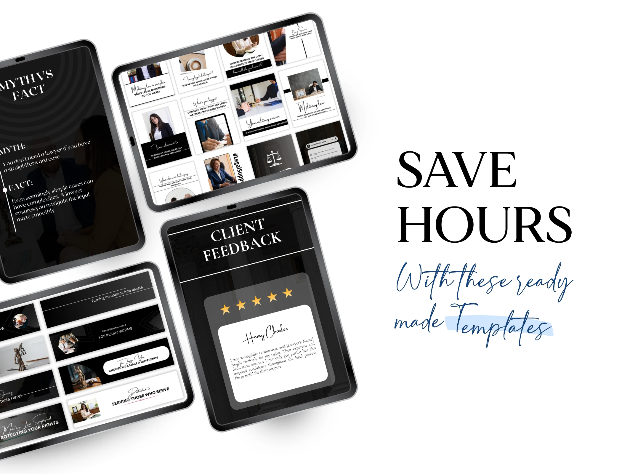 Client Feedback Templates: Elegantly designed review layouts to showcase your firm’s success stories.