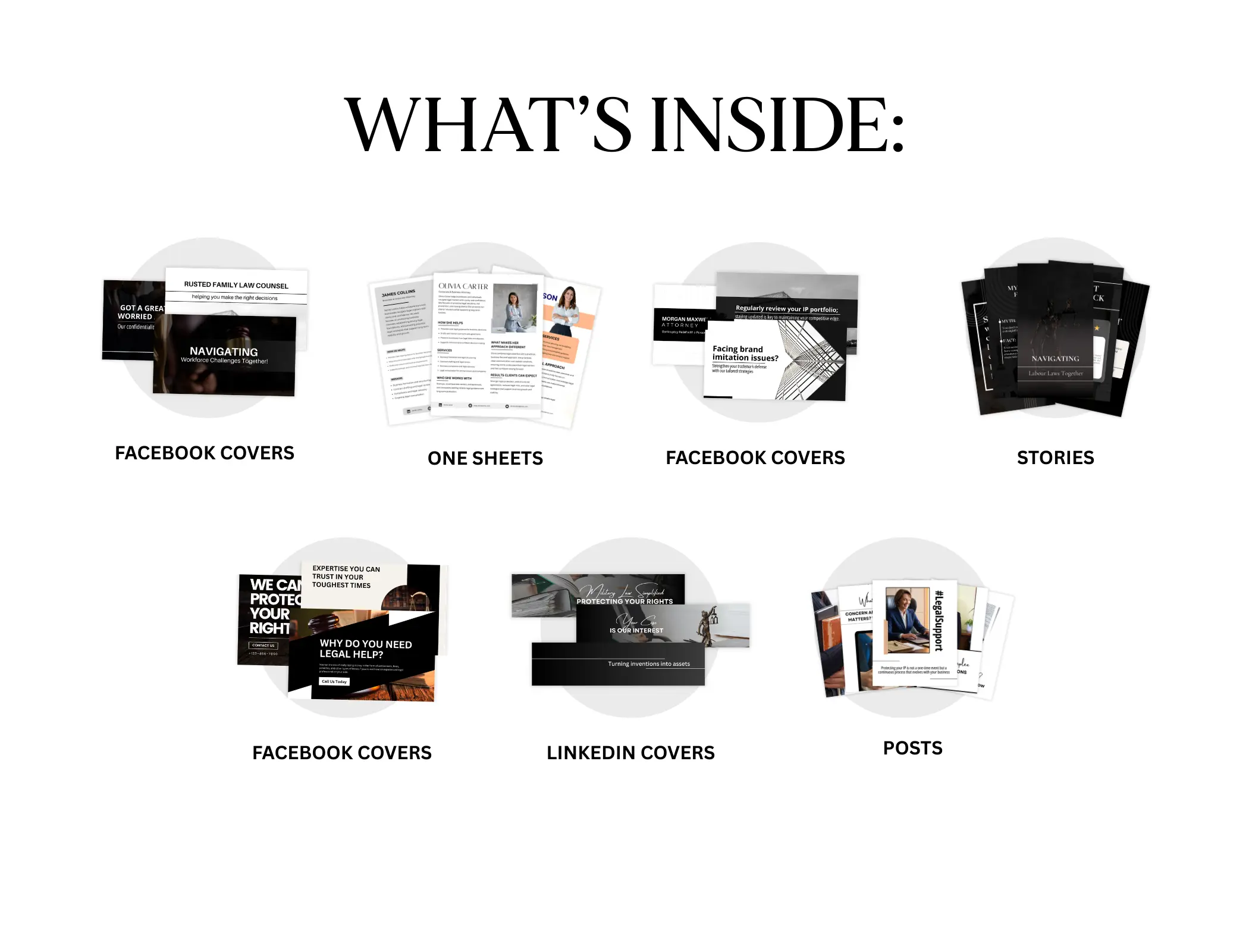 With 350+ premium templates, this kit covers everything from your social media presence to your professional bio sheets—allowing you to focus on your cases while we handle your aesthetic.